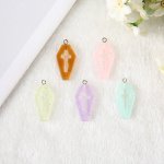 - 15 resin charms in a mix of coffin, planchette, and cross designs.