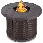 This round gas fire pit table is ideal for hosting outdoor gatherings, relaxing with family, or unwinding after a long day. With a powerful 50,000 BTU output, it provides comforting warmth, making it perfect for enjoying outdoor spaces in any season. Its versatile design allows you to use it as a stylish table during the day and a cozy fire pit in the evening. The faux wood top and wicker base bring a timeless look that blends beautifully with any patio, deck, or backyard setup.