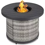 If you're seeking a blend of functionality and aesthetic appeal, this fire pit table offers everything you need. Its high-quality metal construction ensures durability, while the combination of faux wood and wicker adds a touch of elegance. With easy propane ignition and low-maintenance glass beads, this fire pit table is a perfect addition for effortless outdoor enjoyment. Plus, the included covers and accessories make it a practical choice for year-round use.