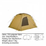 • Material: 50D polyester fabric with silicon coating (outer tent), 240T polyester pongee (inner tent), 150D polyester oxford cloth (tent bottom)