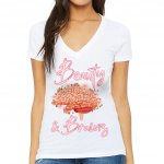 The fabric of our shirt is super soft, lightweight, breathable, and cozy. Beauty and Brains Women's V-Neck T-Shirt features a modern feminine fit, deep V-neck, short sleeves and superior Airlume combed and ring-spun cotton.