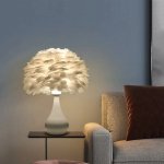 Chic White Feather LED Table Lamp - Fashionable Modern Decor for Bedroom & Living Room