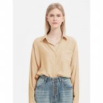 The blouse features a classic straight cut, complemented by a sophisticated turn-down collar and full-length sleeves. Its single-breasted closure adds a touch of elegance, while the solid color pattern allows for easy pairing with any outfit. Available in a range of chic colors including Pink, Blue, Yellow, White, and Khaki, this blouse is a versatile choice for any occasion.