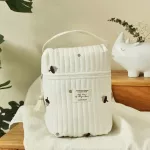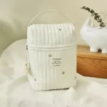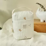 This isn’t just any diaper bag. The floral embroidery adds a touch of elegance, setting it apart from the mundane. The soft cotton material and expert embossing technique add a luxurious feel, while the practical design with multiple compartments keeps everything organized. Its versatility and style make it ideal not just for baby items but as a personal accessory too.