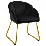 Designed with your comfort in mind, this armchair boasts a flared backrest that offers excellent support for your head and neck, perfect for lounging. The padded, round armrests align perfectly with your arms, ensuring maximum relaxation. The sturdy metal legs with a gold finish not only enhance the chair's elegance but also provide robust support and stability.