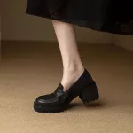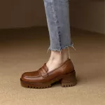 What sets these loafers apart is their unique combination of luxury and leisure. The genuine leather craftsmanship not only ensures durability but also adds a touch of elegance. The chunky platform heels provide an extra lift, while the round toe keeps the look classic and versatile.