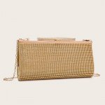 This clutch boasts a sleek, hard exterior adorned with exquisite chains and diamonds. The solid pattern and fashionable hasp closure perfectly complement its clutch shape, making it not only a handbag but a statement of style. Its polyester lining ensures durability, while the no-pocket interior offers a seamless look, prioritizing simplicity and elegance.