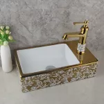 The Golden Ceramic Washbasin Sink Faucet Combo is designed with meticulous attention to detail, offering both style and practicality. Here are some of its standout features: