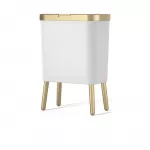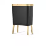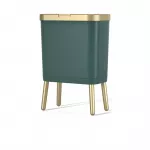 This trash can is made of high-quality plastic, ensuring durability and longevity. The gold spraying process adds a luxurious touch to the lid and legs, making it a perfect fit for modern interiors. The slim design allows it to fit effortlessly in tight spaces, such as the side of a coffee table, gaps, and corners. With a horizontal large opening of 30 cm, it is especially suitable for kitchen use, allowing you to dispose of waste easily without creating a mess.