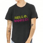 Hello World Curved Hem T-Shirt - Cool Design T-Shirt - Trendy Curved Hem Tee