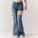 Our High Waist Hollow Out Chain Spliced Slim Flare Jeans are not just a piece of clothing; they're a statement. They represent a blend of comfort, style, and quality, making them a must-have for any fashion enthusiast.