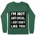 I Don't Like You Long Sleeve T-Shirt is proudly made with 7x less water than average manufacturers, in recycle-friendly facilities that also guarantee zero sweatshop conditions. Sarcastic is designed and printed in California.