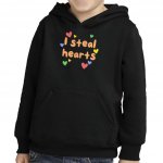 With a super soft blend, toddlers will love this pullover for playtime and every adventure. I Steal Hearts Toddler Pullover Hoodie is featured kangaroo pockets, ribbed cuffs, and no drawstrings.