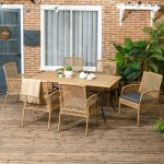 - Six Comfy Chairs: Each featuring a lattice back and cushioned seat, made with PE rattan for cool, breathable comfort and durability.