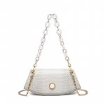 Introducing your next must-have accessory – a stunning underarm half moon bag that effortlessly combines fashion with functionality. Designed for the modern woman, this luxury evening and party saddle bag is your perfect companion for any occasion, be it a sophisticated soirée or a casual day out. With its unique alligator pattern and exquisite pearl and beading decorations, it sets you apart from the crowd, making a statement of elegance and style.