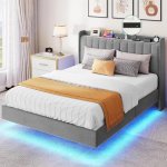 Luxury Queen LED Floating Bed Frame with USB and Type-C Charging Ports