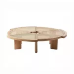 Minimalist Modern Ash Wood Rattan Coffee Table - Round Low Sofa Side Table