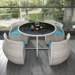 This set stands out with its minimalist modern design, blending functionality with aesthetic appeal. The natural rattan material not only adds a touch of elegance but also offers durability and comfort. Unlike bulkier outdoor furniture, its sleek lines and modern style add a sophisticated touch to any outdoor space without overwhelming it.