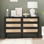 Introducing the perfect blend of style and functionality for your home – a freestanding, modern dresser designed to elevate the aesthetic of any room. Crafted with meticulous attention to detail, this dresser combines the natural allure of rattan with the sophistication of golden handles, creating a timeless piece of furniture that complements any decor.