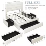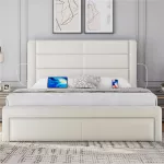 This bed frame is not just a piece of furniture, but a multifunctional innovation tailored to meet the demands of your busy life. Whether it's for a rejuvenating night's sleep or a lazy weekend morning, the added features of our platform bed enhance every moment. The built-in USB ports ensure your devices are always ready to go, while the spacious drawers provide discreet storage for all your essentials, reducing clutter and promoting a serene bedroom atmosphere.