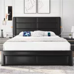 Transform your bedroom into a haven of comfort and functionality with our Modern Black Leather Upholstered Platform Bed. Designed to support your modern lifestyle, this bed combines luxurious comfort with cutting-edge convenience, making it the perfect addition to any contemporary home.