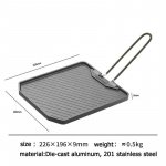This frying pan is crafted from high-quality 201 stainless steel, ensuring longevity and resistance to wear and tear. The nonstick surface guarantees hassle-free cooking and easy cleaning, perfect for the outdoor environment. Its sleek black color adds a touch of style to your camping kitchen. The lightweight design makes it easy to pack and carry, while the sturdy handle ensures safe and comfortable handling during cooking.