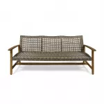 Transform your patio or backyard into a cozy retreat with our Outdoor Wood Sofa. Featuring a beautiful handwoven wicker seat and a natural stained finish, this sofa combines rustic charm with modern durability. The large seating area comfortably accommodates three people, making it perfect for hosting guests or lounging solo.