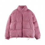 Elevate your winter wardrobe with our Pink Striped Corduroy Women Turtleneck Puffer Jacket. This casually chic, thick, warm, cotton-padded crop quilted coat is a winter essential that seamlessly combines fashion and function.