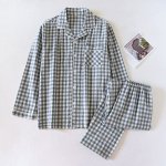 ![2024 Japanese Spring & Autumn Couple Pajama Set - 100% Cotton Plaid Two-Piece 2024 Japanese Spring & Autumn Couple Pajama Set - 100% Cotton Plaid Two-Piece]()