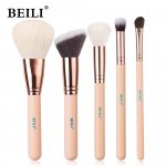 Our brush set boasts an exceptional blend of natural and synthetic bristles, including luxurious goat hair, pony hair, and nano fiber. This combination ensures smooth, even, and comfortable application. The brushes come in a variety of sizes and types, ranging from big powder brushes to detailed liners, meeting all your makeup needs. Encased in a chic pink and rose gold finish, each brush is a work of art in itself.