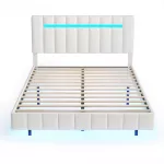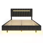 Queen Size LED Upholstered Platform Bed Frame with USB Charging
