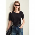 What sets this tee apart is its asymmetric design and elegant neck cut, providing a fresh take on the classic summer tee. The split sleeves add a modern twist, making it a standout piece in your wardrobe. It’s not just a tee; it’s a statement of style and comfort.