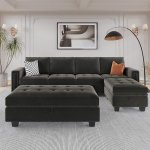 Redefine your living room with this stylish, space-saving Velvet Convertible 4-Seat Sectional Sofa. With a reversible chaise and two storage ottomans, this modern L-shaped couch combines comfort, functionality, and style effortlessly. Whether you're lounging, hosting friends, or enjoying a movie night, this sectional sofa provides the ultimate relaxation spot with its cozy, deep cushions and plush velvet upholstery.
