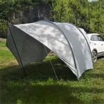 Our Camping Car Rear Tent stands out with its eggshell-like shape, offering not just functionality but also a touch of style to your outdoor setup. The silver coating on various color options not only adds to its aesthetic appeal but also enhances its sun-protective capabilities. Its large size ensures ample space for group activities, while its lightweight design makes transportation and setup a breeze.