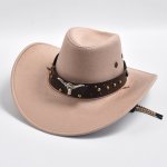 Our Vintage Western Cowboy Hat stands out with its big-edge design that not only protects you from the sun but also adds a dramatic flair to your attire. The artificial suede material offers the look and feel of real suede without the high maintenance, making it easy to care for and durable over time. It’s not just a hat—it's a statement of style and practicality.