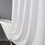 White Boho Shower Curtain with Tufted Pleat Floral Pattern