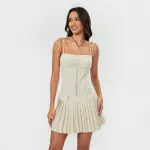 This sleeveless, above-knee mini dress is tailor-made for the summertime, perfect for showcasing a youthful and spirited fashion sense. Whether it’s a picnic, a festival, or a casual meet-up with friends, this dress promises to keep you comfortable while making a fashion-forward statement.