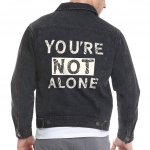You are Not Alone Men's Vintage Denim Jacket - Cute Black Denim Jacket - Cool Trendy Jacket for Men